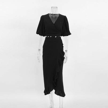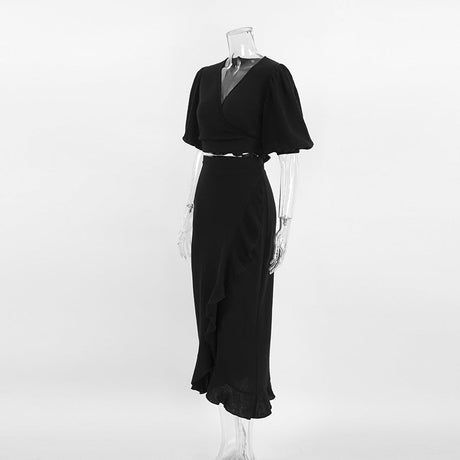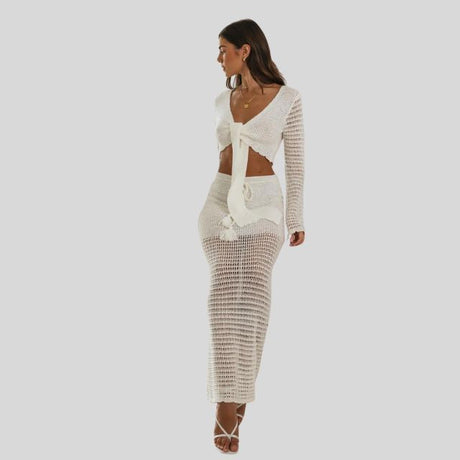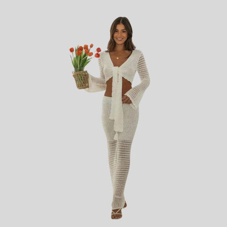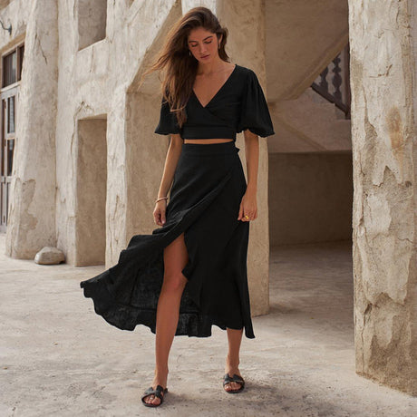 Miranda - Bohemian two-piece set with wrap skirt and crop top