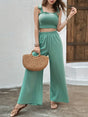 Meet our casual two-piece set, designed for the fashion-conscious woman who appreciates both style and comfort. This ensemble consists of a trendy ruffled crop tank top and chic wide-leg trousers, which together create a cohesive and effortlessly stylish look. The ruffled tank top adds a touch of flair, while the wide-leg trousers offer both sophistication and freedom of movement. Whether you are relaxing at home or going on a casual outing, this versatile set is sure to become an essential part of your wardrobe. Elevate your style with this fashionable and comfortable two-piece ensemble.
