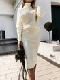 Set Of Loose Knit Turtleneck Sweater And Skirt For Women - Beige / One size is backordered and will ship as soon as it is back in stock.