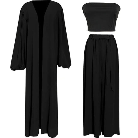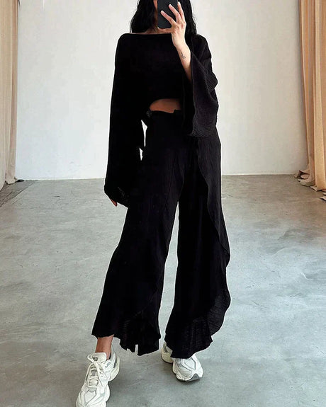 Cropped Top With Ruffles and Wide Trousers in a Set