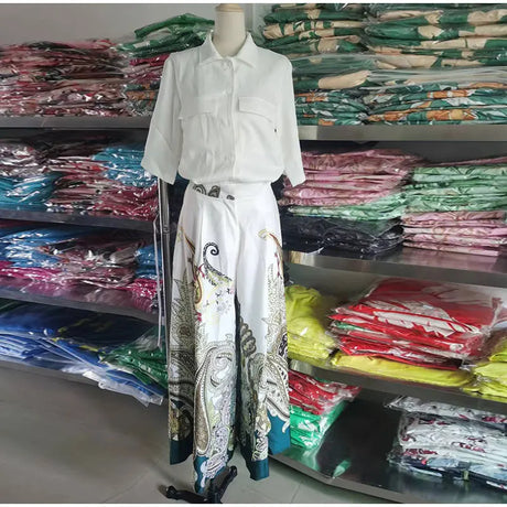 Stylish Short Shirt and Pants With Wide Legs For Women