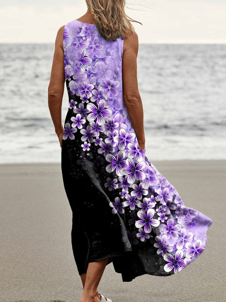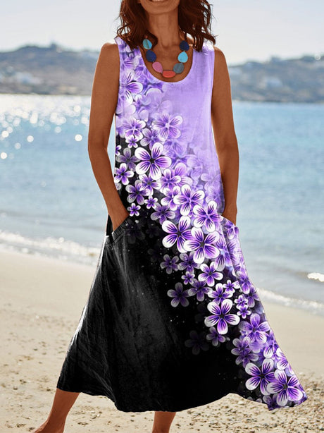 Women Sleeveless Sundress Elegant Round Neck Cotton Linen Solid Long Tank Casual Summer Dress