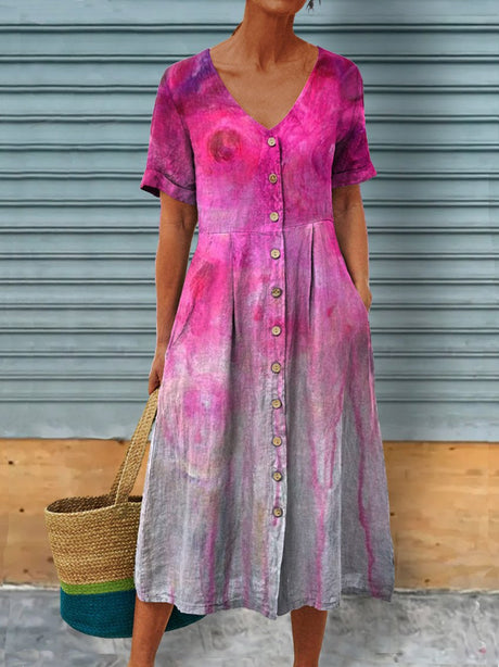 Women's Vintage Marble Texture Linen Pocket Dress