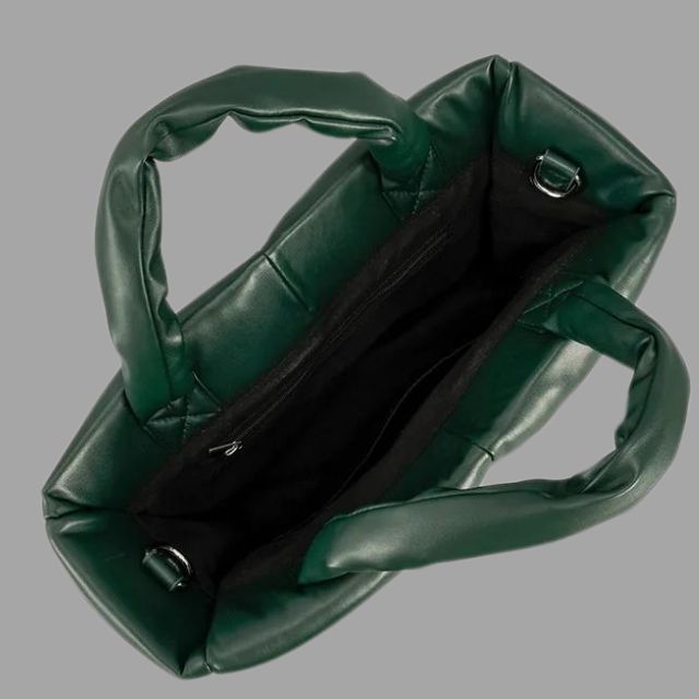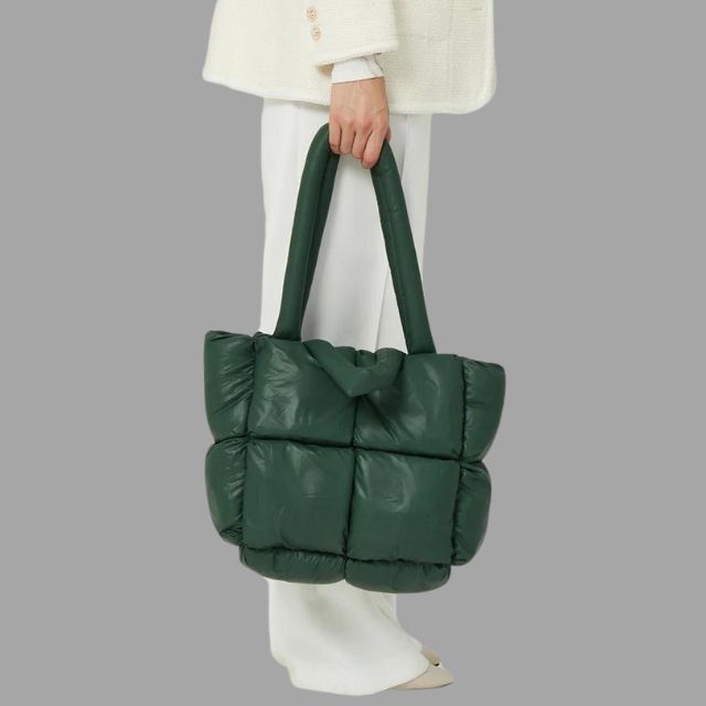 Lift your accessory game with this luxurious Aurora - Metallic Puffer Tote Bag with Ruffled Design. It's a fashion statement piece with its quilted design and shiny nylon finish, adding a chic touch to any outfit. Designed for functionality and style, it offers a large capacity, ideal for those who need to carry more than just the essentials. With the versatility to be worn as both a shoulder bag and crossbody, it's perfect for the winter season and completes your look with its unique and cosy aesthetic.