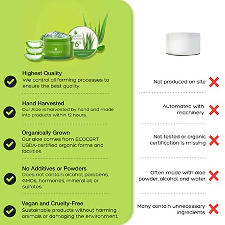Organic Pure Aloe Vera Gel Made with 96% USDA Organic Aloe Vera within 12 Hours of Harvest