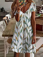 The Abrielle - V-neck dress with leaf pattern is an elegant and versatile ensemble with nature-inspired charm. The enchanting leaf print is reminiscent of a forest landscape, while the V-neckline adds a touch of femininity. Suitable for a variety of occasions, this dress offers a flattering fit and effortless style transitions. It's the perfect choice for anyone looking for a balance of sophistication and whimsical charm in their wardrobe.