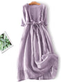 Cotton And Linen Lace Up Three Quarter Sleeve Solid Color Dress - Purple / XS is backordered and will ship as soon as it is back in stock.