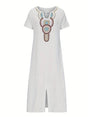 Feliciana - Boho neckline maxi split dress - White / S is backordered and will ship as soon as it is back in stock.