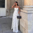 Isabelle - Strapless jacquard maxi dress with subtle floral pattern - White / S is backordered and will ship as soon as it is back in stock.