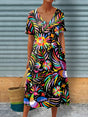 Multicolor Bird And Floral Pattern Printed Women's Linen Pocket Tunic Dress