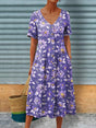 Spring Clematis Floral Pattern Printed Women's Linen Pocket Tunic Dress