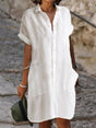 Women's Cotton And Linen Solid Color Elegant Dress - White / S is backordered and will ship as soon as it is back in stock.