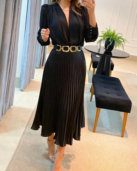 Fiorella | Comfy Pleated Belt Ladies Dress
