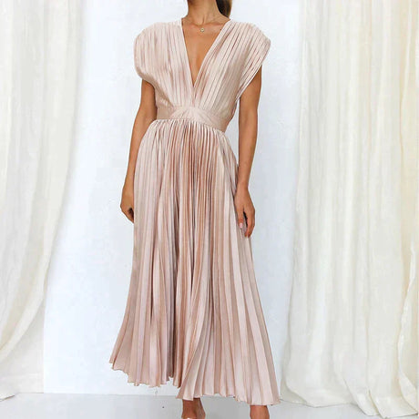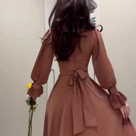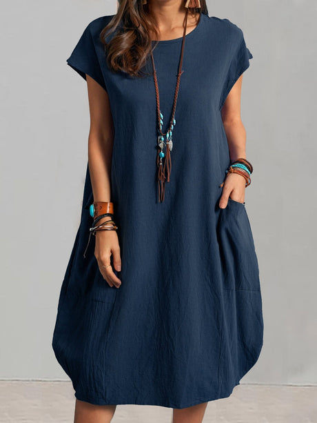 Women's Retro Solid Cotton Line Long Sleeve Dress