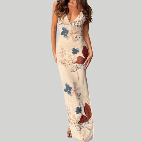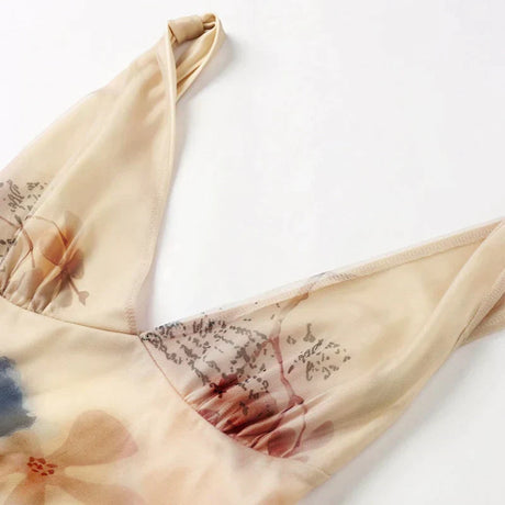 Women's Retro Floral Art Print Casual Linen Pocket Dress