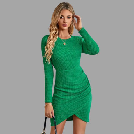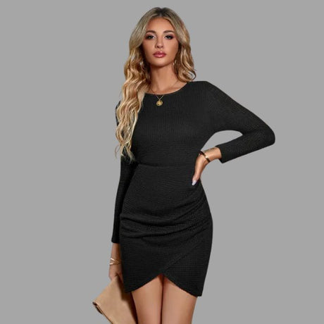 Britney - Elegant long-sleeved mini dress with asymmetric hem