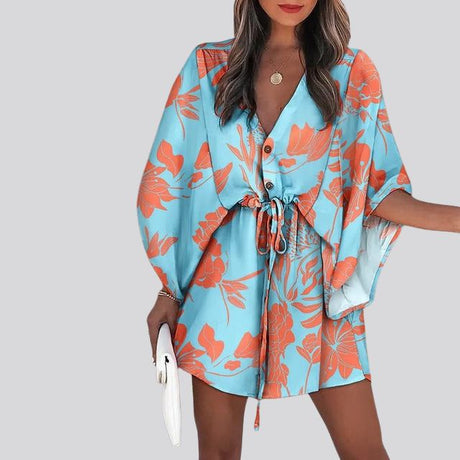 Giselle Boho Shirt Dress With V-Neck and Floral Print