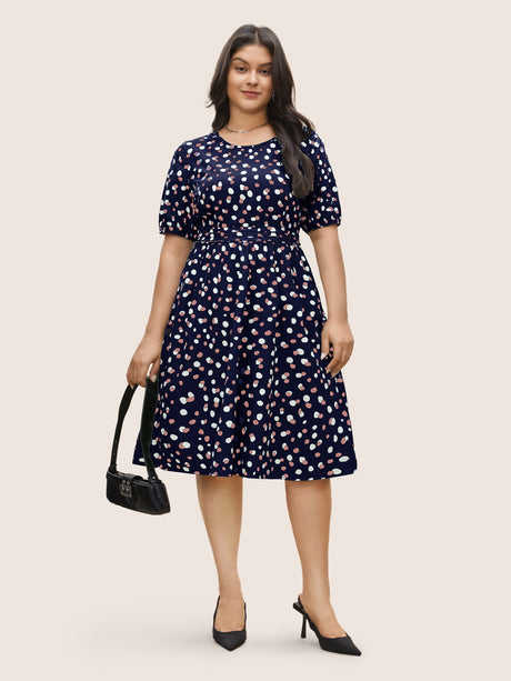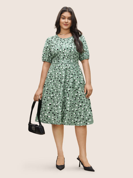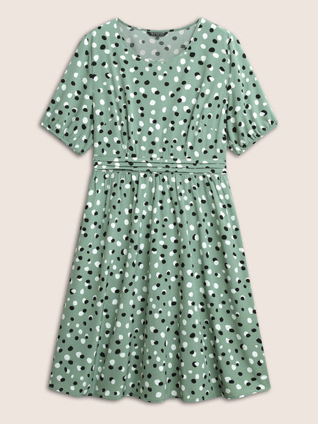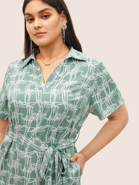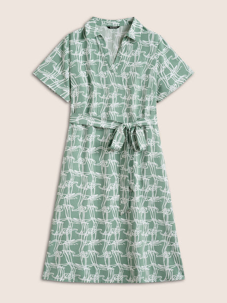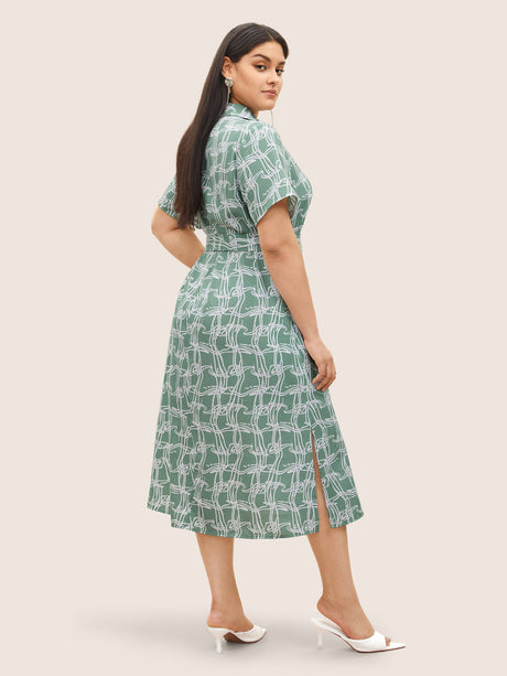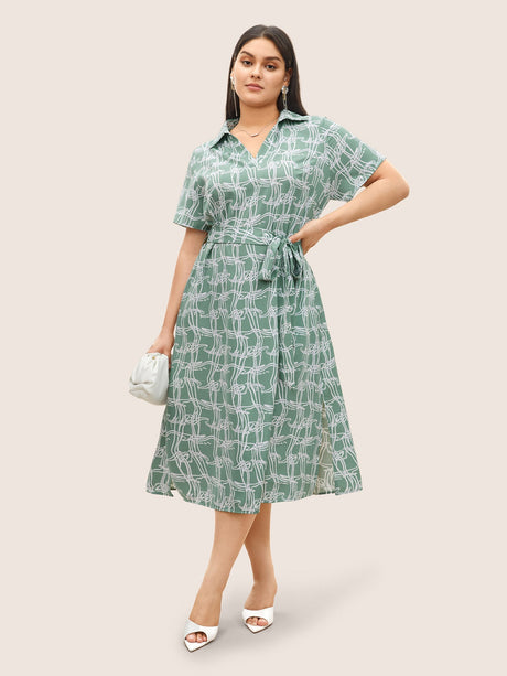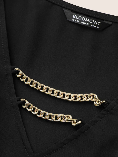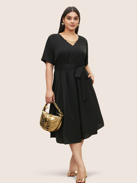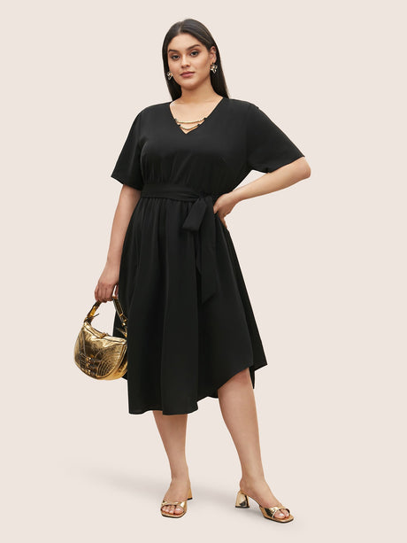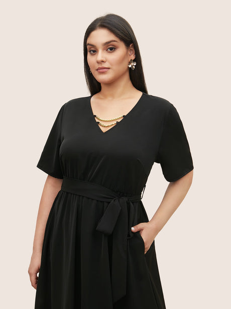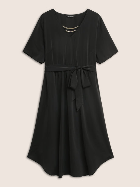 Anti-Wrinkle Metal Chain Detail Belted Arc Hem Dress