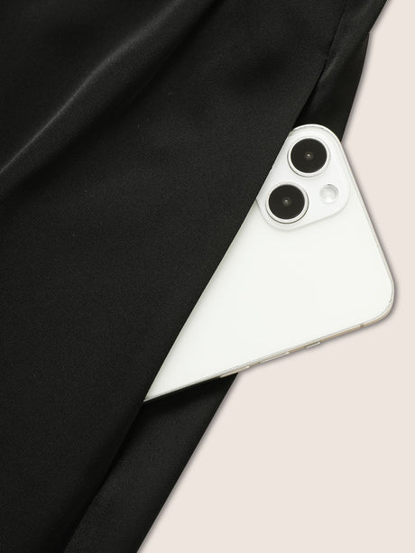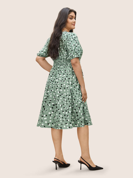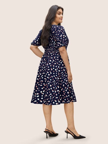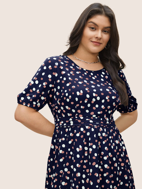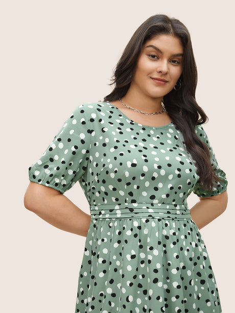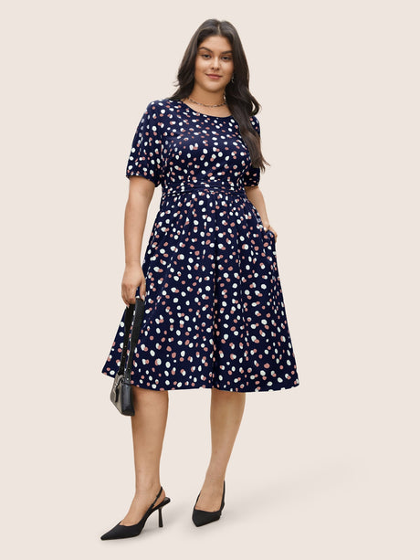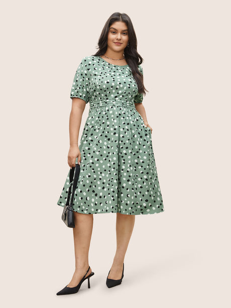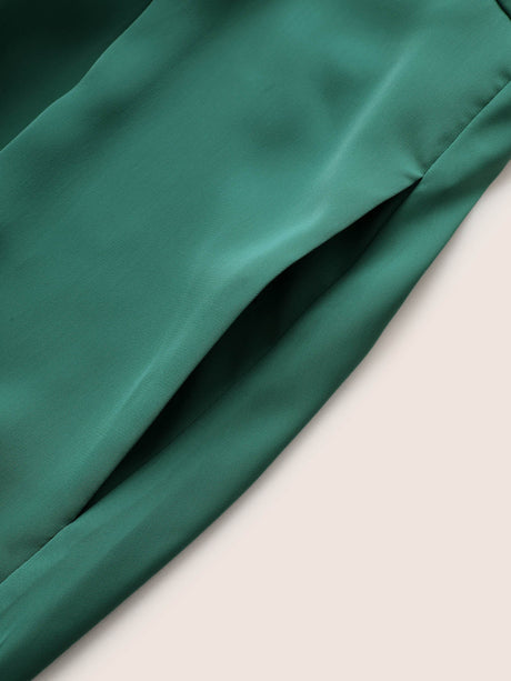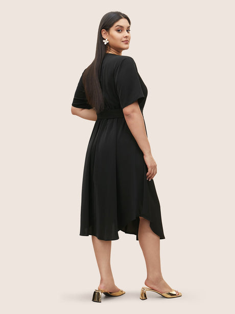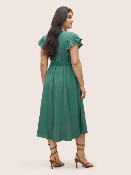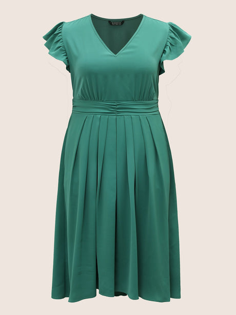 Anti-Wrinkle Solid Ruched Flutter Trim Pleated Dress