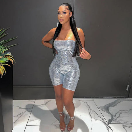 Evelina - Glittering sequin jumpsuit with strapless cut