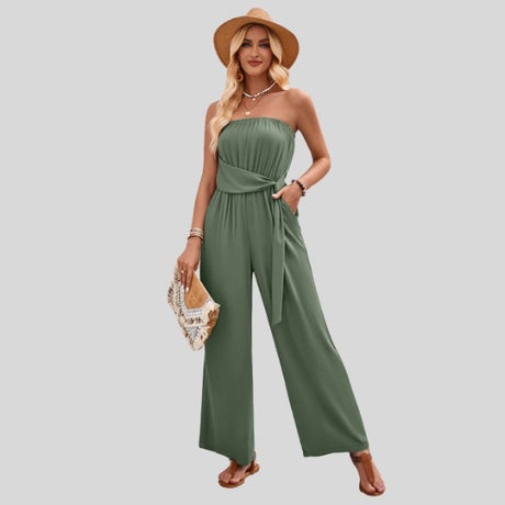 Olivia - Off-the-shoulder jumpsuit with waist tie