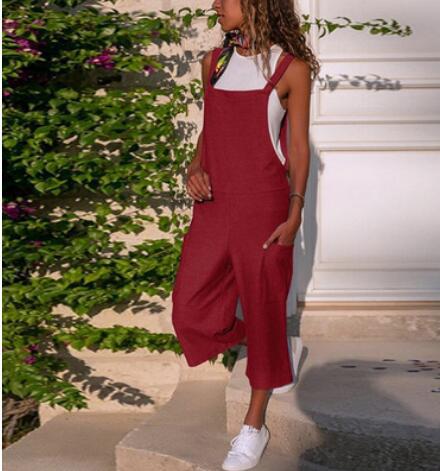 Cotton Linen Casual Loose Suspender Jumpsuit