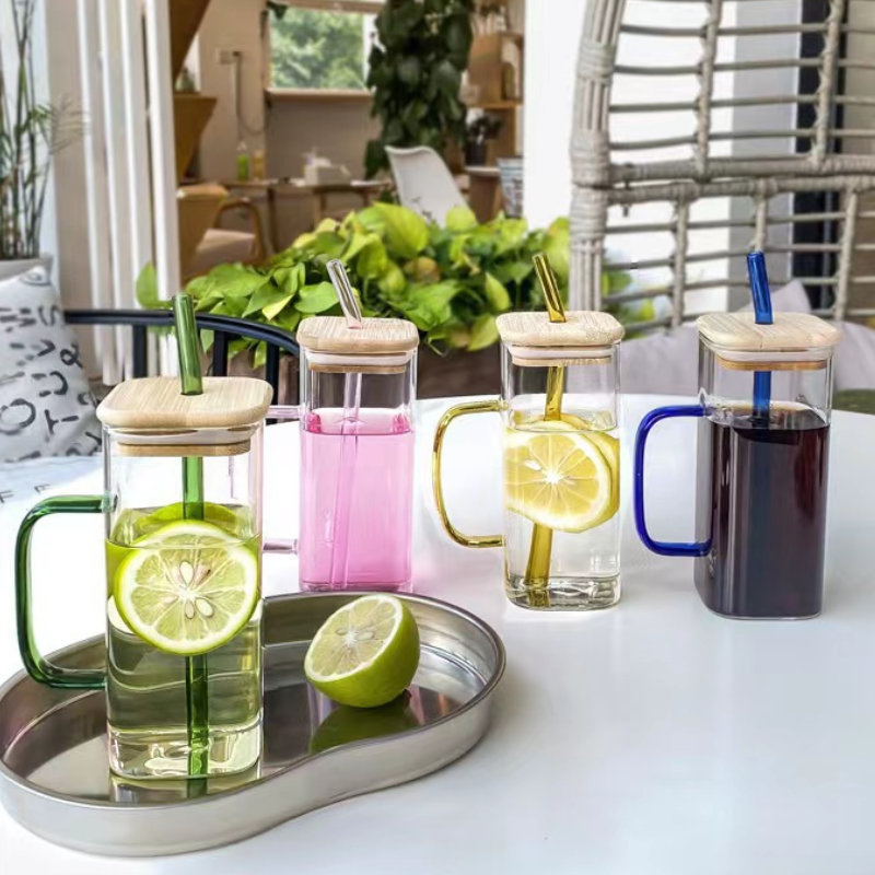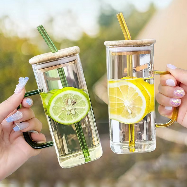 The Square Crystal Glass, made of durable silicone, offers a large volume to hold both hot and cold liquids without breaking. Its transparent design with a colored handle adds a touch of style, while the included lid and option for a glass straw make it versatile. Perfect for staying hydrated while working or studying this summer.