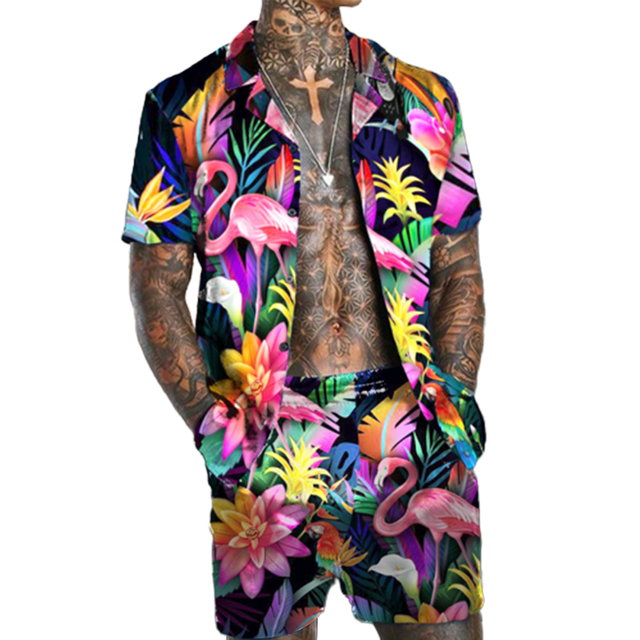 Flamingo Print Short Sleeve Shirt Shorts Set 37582957L