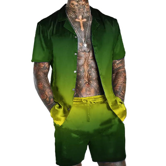 Gradient Colorblock Short-Sleeve Shirt Set 04011462L - Green / S is backordered and will ship as soon as it is back in stock.