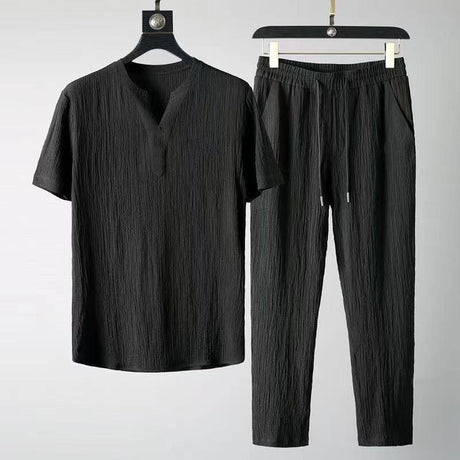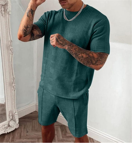 Color Block Casual Print Short Sleeve Suit 60678192L