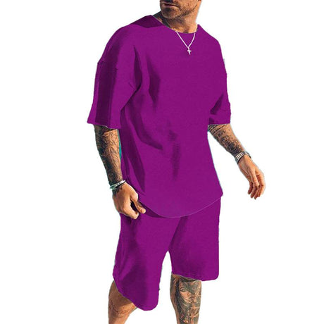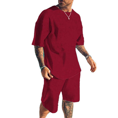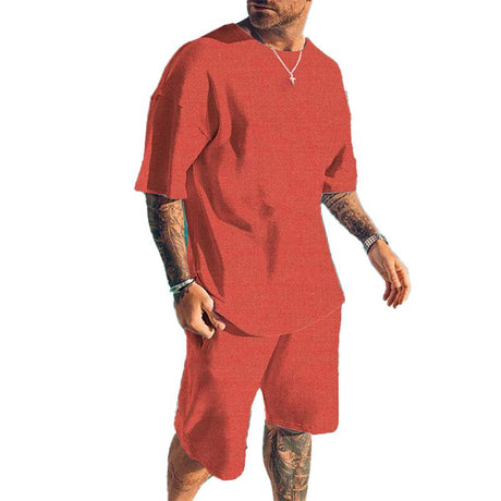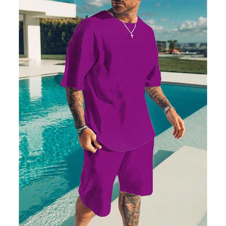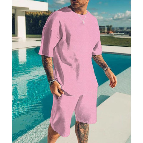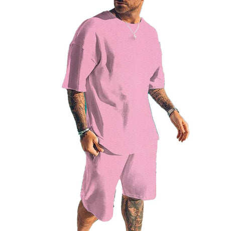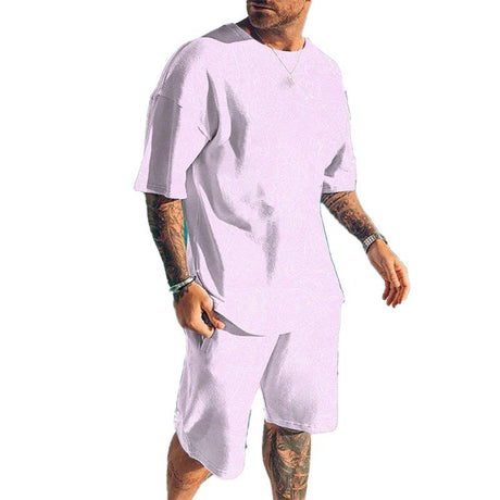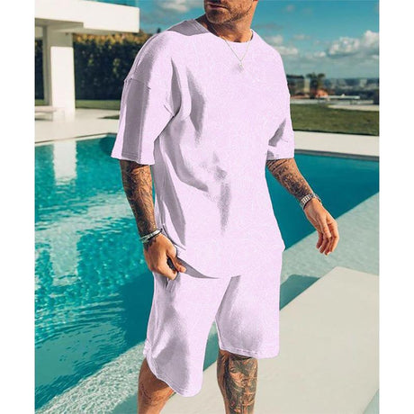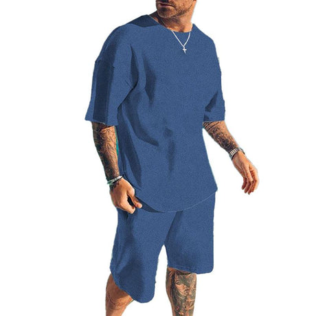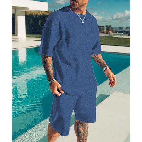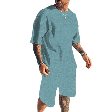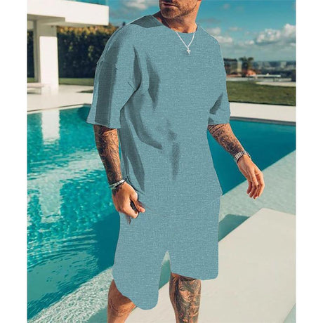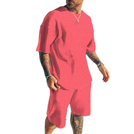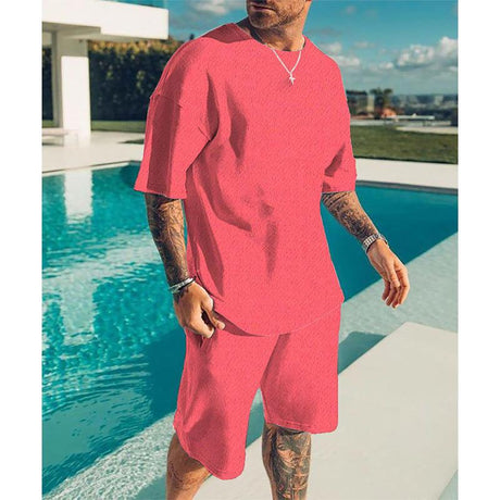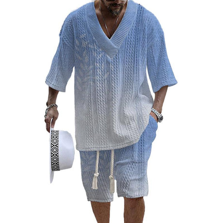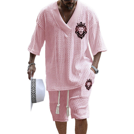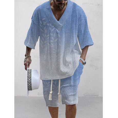 Men's Printed Short Sleeve Shorts Textured Set 18407709L