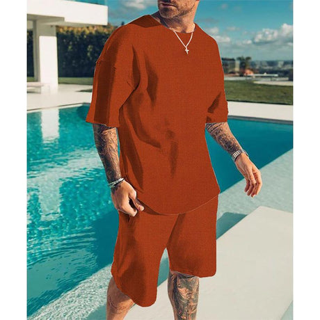 Men's Old-money Hawaiian Short Sleeve Shirt Set 35511857YY
