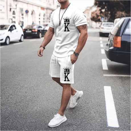Men's Letter Print Short-sleeved T-shirt Set Sports Leisure Set 42580933L