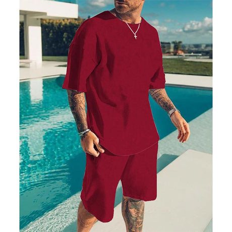 Men's Printed Short Sleeve Shorts Textured Set 45634654L