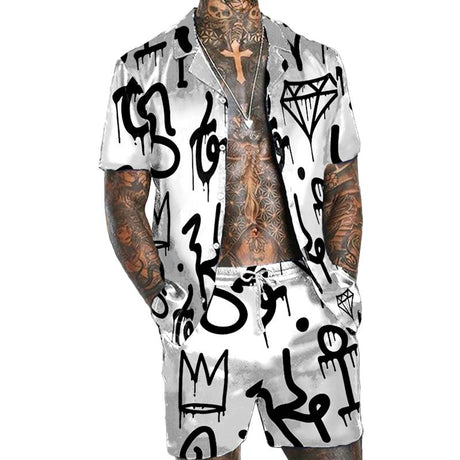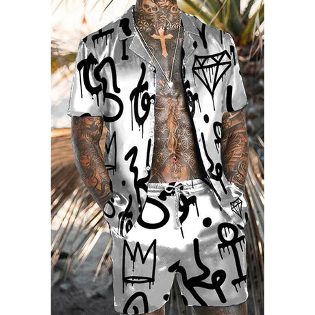 MEN'S ART CASUAL PRINT SHORTS SET 45108232YM
