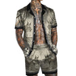 Leopard Print Short Sleeve Shirt Set 12243143L