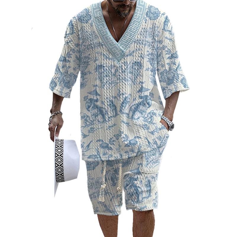 Men's Art Casual Print Shorts Set 68741110YM - Suits(M) / White / M is backordered and will ship as soon as it is back in stock.