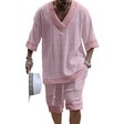 This men's knitted printed short-sleeved shorts set is a perfect addition to your wardrobe. It stands out with its unique style and exquisite printed design, exuding unparalleled fashion sense. The short sleeves and shorts design keep you comfortable in everyday life. Made from high-quality fabric, the outfit offers both softness and durability, ensuring maximum comfort during wear. Whether on a beach vacation or in the city, this outfit allows you to show off your unique personal taste.