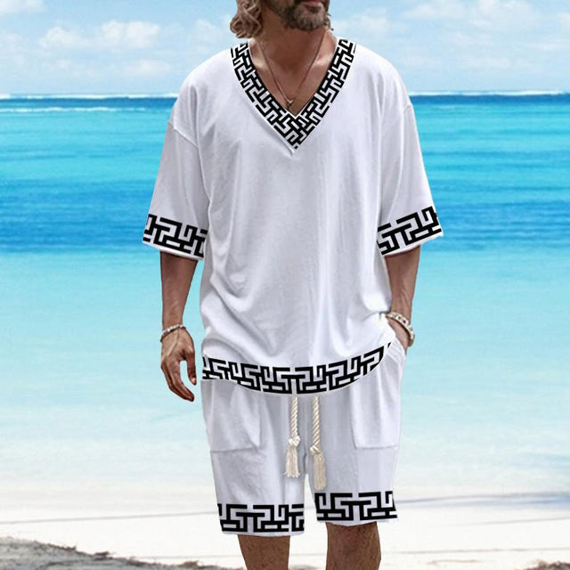 MEN'S ART CASUAL PRINTED SHORT SLEEVE SUIT 27658900YM - Set(G) / White / M is backordered and will ship as soon as it is back in stock.