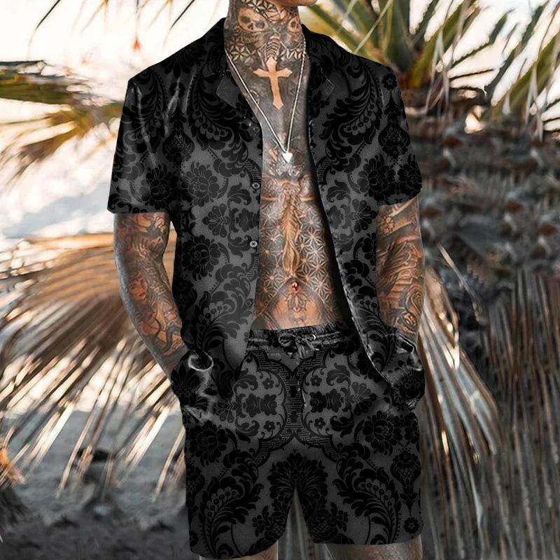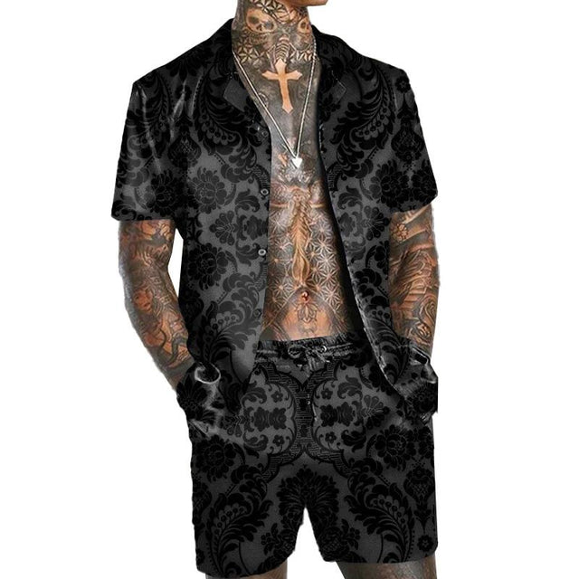 MEN'S CASUAL LOOSE SHIRT SHORTS SUIT 41963252YM - Suits(B) / Black / S is backordered and will ship as soon as it is back in stock.