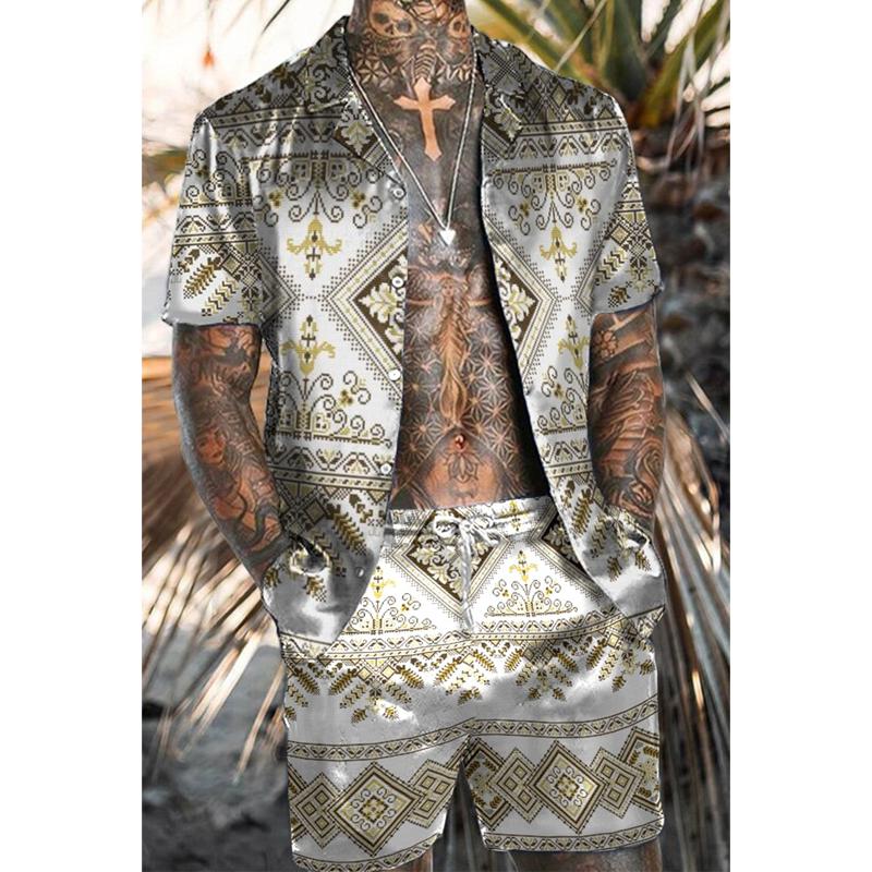 Men's Hawaiian Matching Set Print Two Piece Set 37997150L - Golden / S is backordered and will ship as soon as it is back in stock.