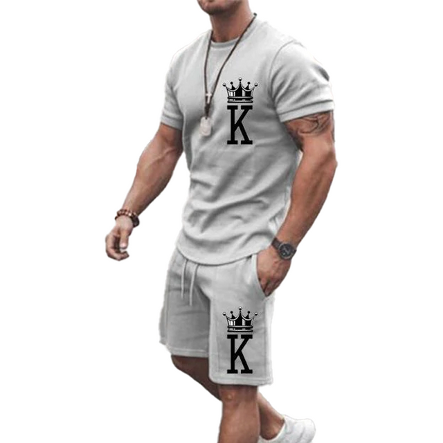 Men's Letter Print Short-sleeved T-shirt Set Sports Leisure Set 42580933L - White / S is backordered and will ship as soon as it is back in stock.