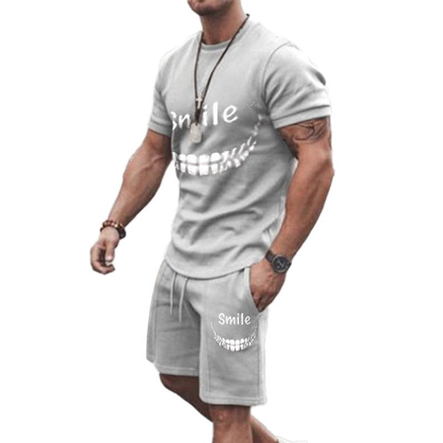 Men's Loose Printed Short Sleeve Shorts Casual Set 84037019L - Gray / S is backordered and will ship as soon as it is back in stock.
