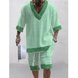 Men's Printed Short Sleeve Shorts Textured Set 02282798L - Suits(M) / Green / M is backordered and will ship as soon as it is back in stock.