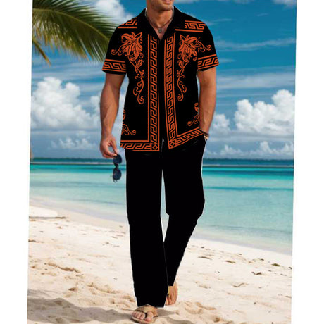 Men's Casual Printed Short Sleeve Shirt and Pants Set 54024830YM