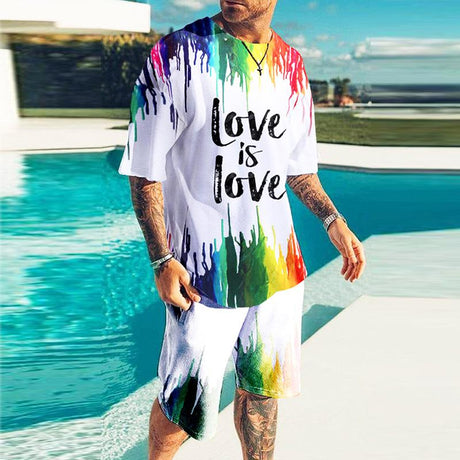 Men's Art Casual Printed Short Sleeve Set 20748454L