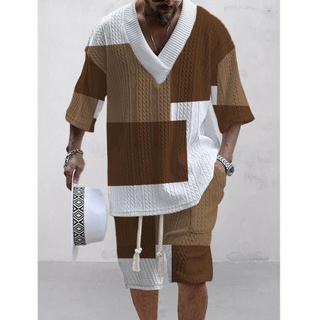 Men's Printed Short Sleeve Shorts Textured Set 57207991L