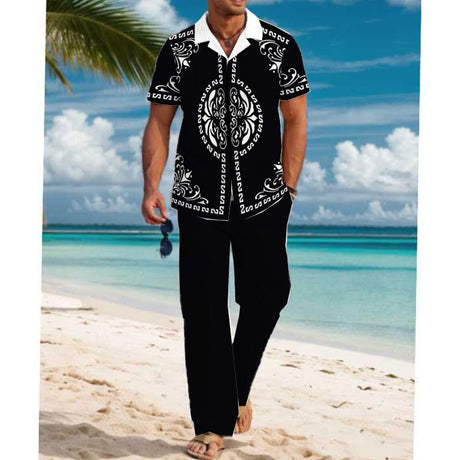 Men's Casual Printed Short Sleeve Shirt and Pants Set 87842996YM