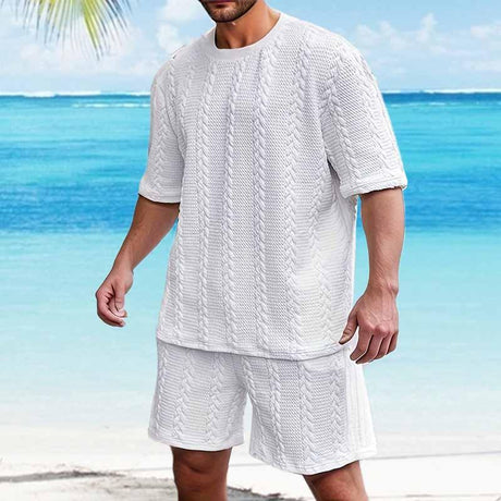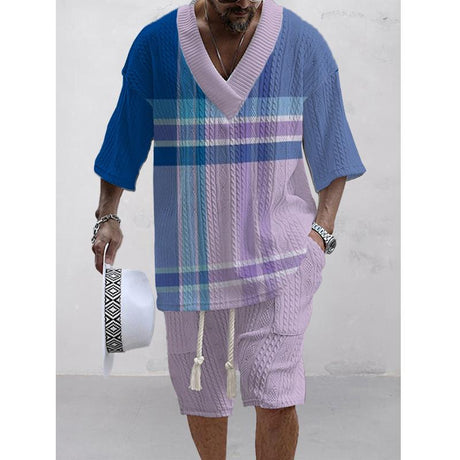 Men's Printed Short Sleeve Shorts Textured Set 05604172L