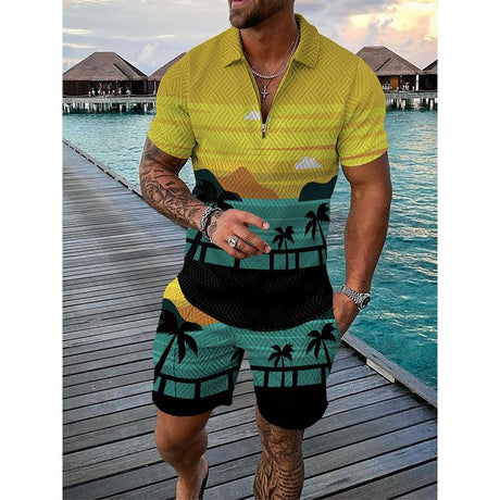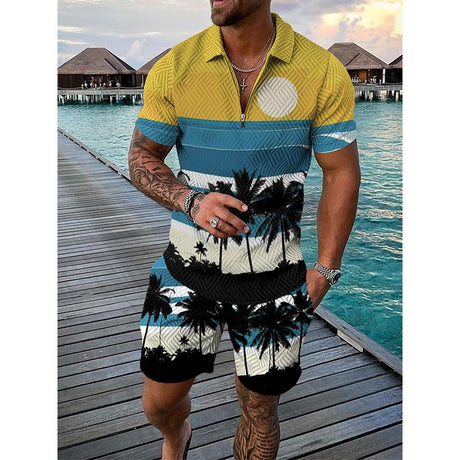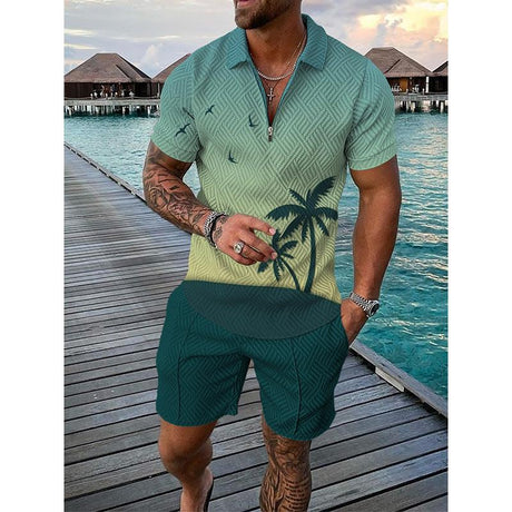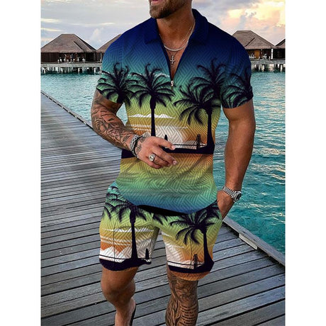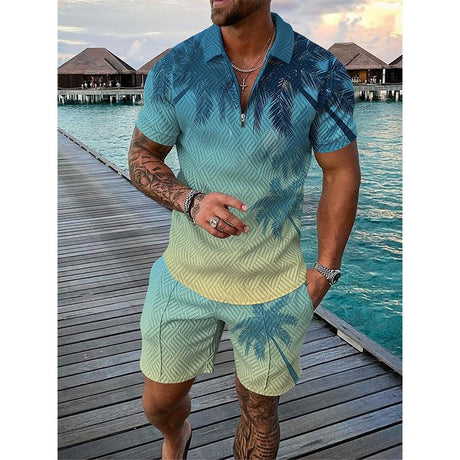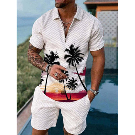 Men's Hawaiian Coconut Tree Polo Shirt Set 83738136L